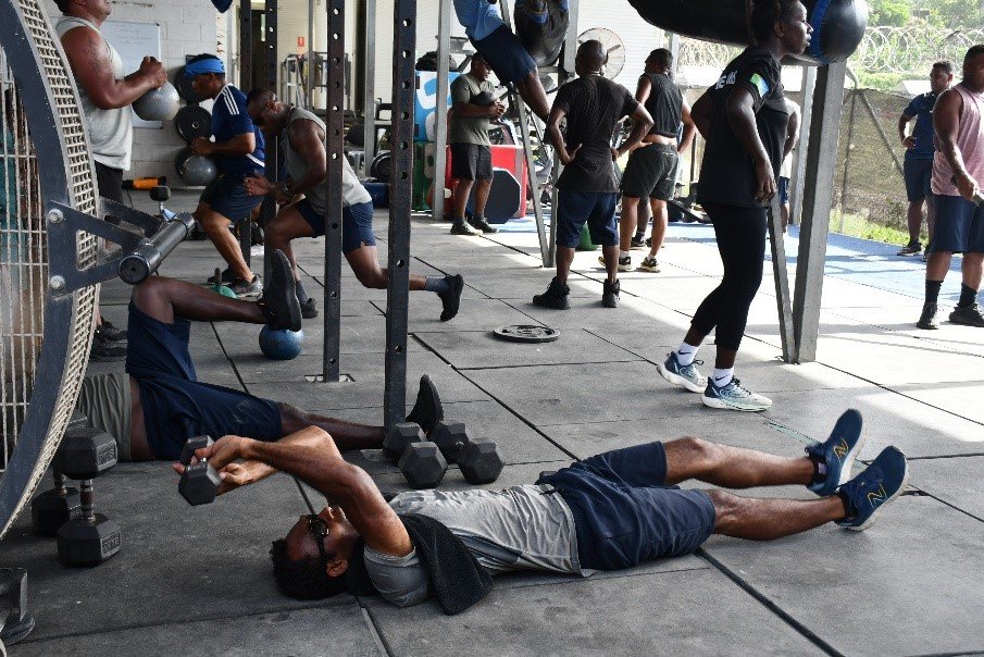 The fitness sessions bring together members from the Central Response Unit (CRU), the Emergency Response Group (ERG) from Correctional Services, and PRD officers, alongside RAPPP Advisors and the Australian Defence Force (ADF) Advisor, who actively participate and engage with officers during the training.