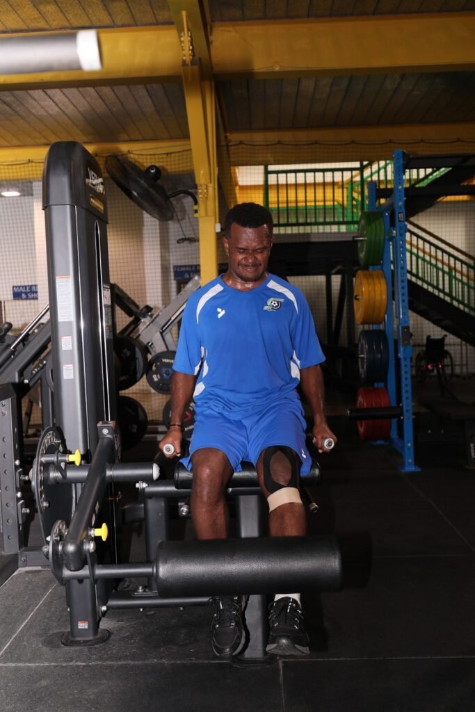 Micah Lea’alafa of the Solomon Islands Senior National Soccer Team in gym session at SINIS. Photo credit @ SINIS/NSC MEDIA